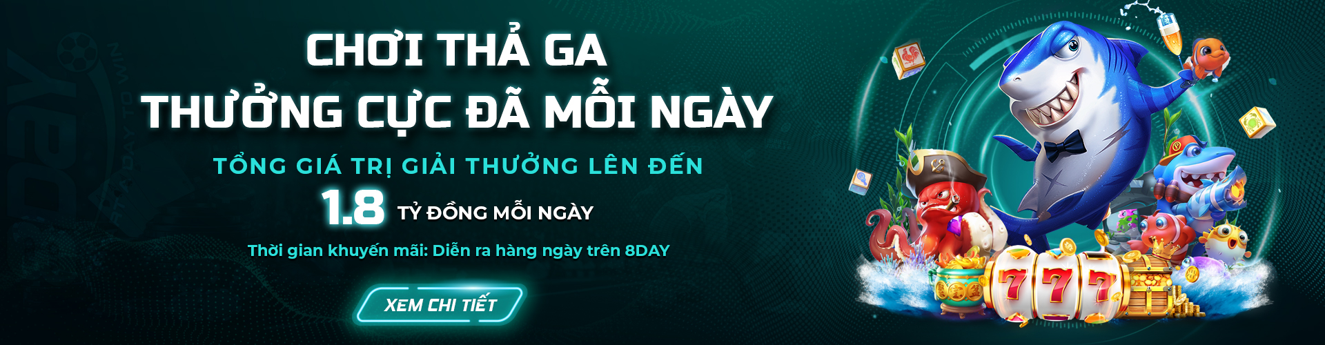 Khi đến với 8Day game thủ sẽ bất ngờ với số lượng sản phẩm cược tại hệ thống lên đến hàng trăm trò chơi đình đám. Với hàng loạt các sảnh cược đang phổ biến hiện nay như bắn cá, game nổ hũ, game đánh bài, xổ số, esports…Mỗi sảnh game đều được thiết lập với mức trả thưởng khác nhau điều này giúp cho bạn hoàn toàn yên tâm với giá trị tiền thưởng tại đây vì rất cao.